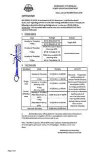ڈبل شفٹ والے سکولز کا پہلی شفٹ کا ٹائم سوموار تا جمعرات 7بج کر30 منٹ سے دوپہر 12:00 تک ہو گا