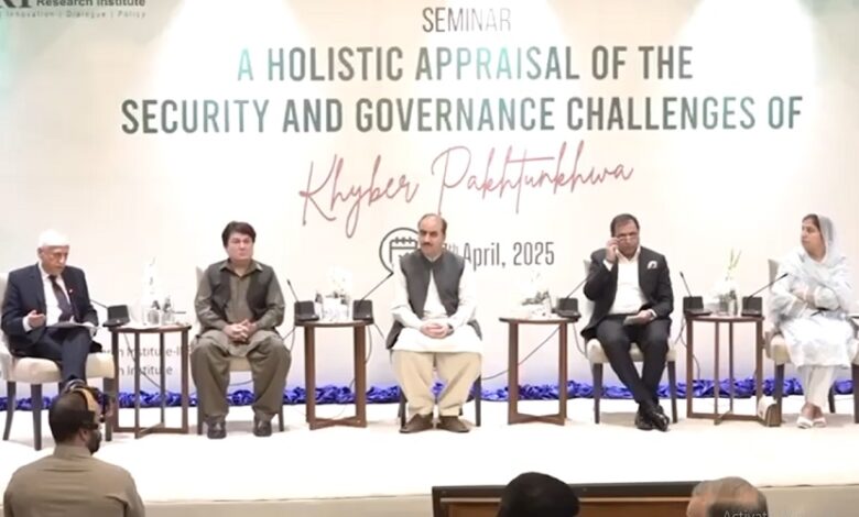 اسلام آباد میں خیبرپختونخوا کے سیکیورٹی اور گورننس چیلنجز پر سیمینار کا انعقاد کیا گیا۔ مقررین نے دہشتگردی کے خاتمے کیلئے فوجی اقدامات کے ساتھ ساتھ معاشی و سماجی اصلاحات کو بھی ناگزیر قرار دیدیا۔