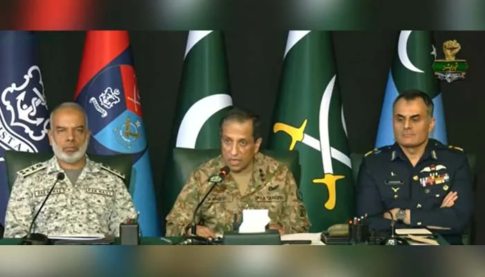 ڈی جی آئی ایس پی آرلیفٹیننٹ جنرل احمد شریف چوہدری، ائیر وائس مارشل اورنگزیب احمد اور وائس ایڈمرل پاکستان نیوی راجہ رب نواز کا بھارت کو جواب ٹاپ ٹرینڈ بن گیا۔سوشل میڈیا پر کہیں ائیروائس مارشل اورنگزیب احمد کے اسکور بتانے کےچرچے رہے تو کہیں ڈی جی آئی ایس پی آر کے فقرے بھی گردش کرتے رہے۔دوسری جانب وائس ایڈمرل رب نواز کو بھی بڑی تعداد میں لوگوں نے سوشل میڈیا پر اپنا اسٹیٹس بنایا۔